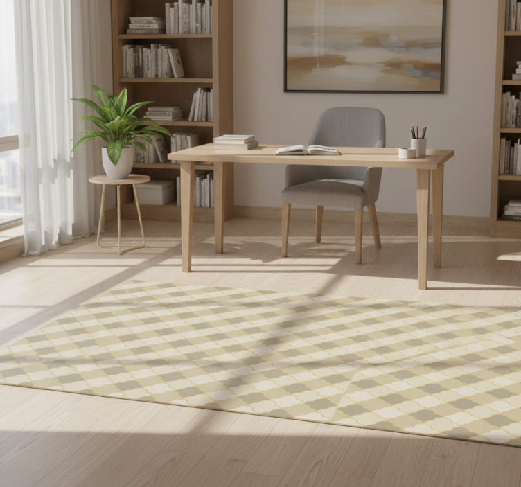 The Geometric vinyl rug in beige art deco design geometric vinyl rug is a perfect addition to elevate your home decor! Its chic design brings a sophisticated flair to any room, making it an ideal choice for living rooms, bedrooms, or dining areas. The unique geometric patterns not only captivate the eye but also create an inviting atmosphere that encourages relaxation and enjoyment.