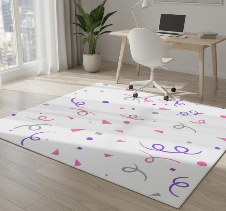 Geometric vinyl rug in grey pink and purple confetti