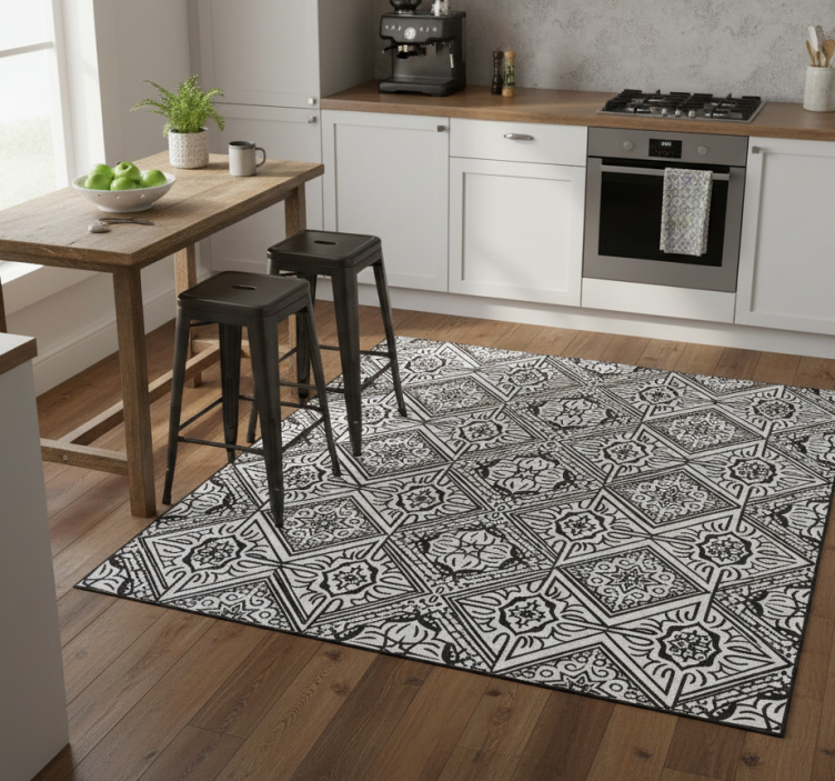 The Kitchen vinyl rug bold contrast kaleidoscope design kitchen vinyl rug is perfect for anyone looking to add a splash of creativity to their home. Its vibrant design inspires joy and liveliness, making it an ideal choice for kitchens where family and friends gather. This rug does more than just decorate; it enhances the ambiance, making your space feel warm and inviting. Imagine enjoying your morning coffee surrounded by such a delightful piece!