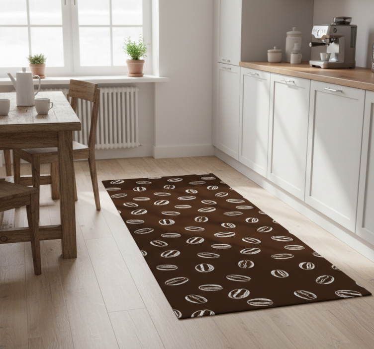 Reference: R21268Transform your kitchen into a coffee lover's paradise with our stunning Kitchen vinyl rug coffee beans pattern. This delightful rug features a vibrant design of coffee beans, creating an inviting atmosphere that perfectly complements your culinary space. With its easy-to-clean surface, anti-slip backing, and scratch-resistant material, this kitchen vinyl rug not only adds aesthetic appeal but also offers practical benefits to enhance your cooking experience!