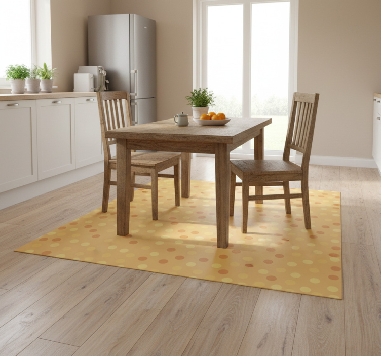 Reference: R21240Introducing the stunning Kitchen vinyl rug orange circles wallpaper, a vibrant addition that instantly transforms your kitchen space! This beautifully designed rug features an array of cheerful orange circles set against a classic backdrop, exuding warmth and personality. Not only does it brighten up your kitchen, but it also boasts impressive features such as being easy to clean, anti-slip, and scratch resistant.