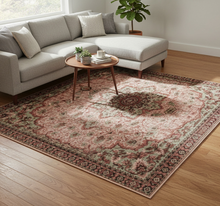 Living room vinyl rug in vintage rose