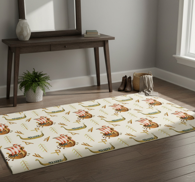 Nature vinyl rug with viking ship design