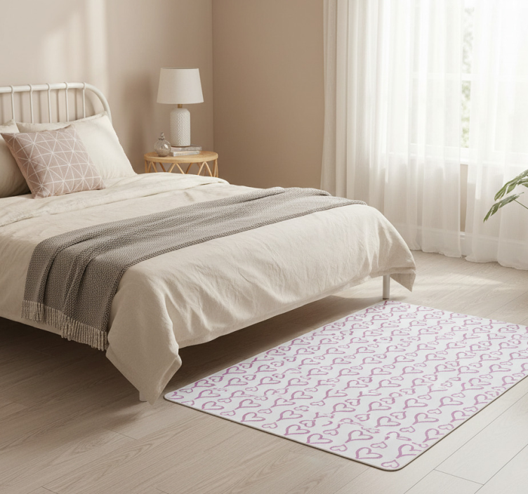 Pink illustrated heart icons bedroom vinyl rug