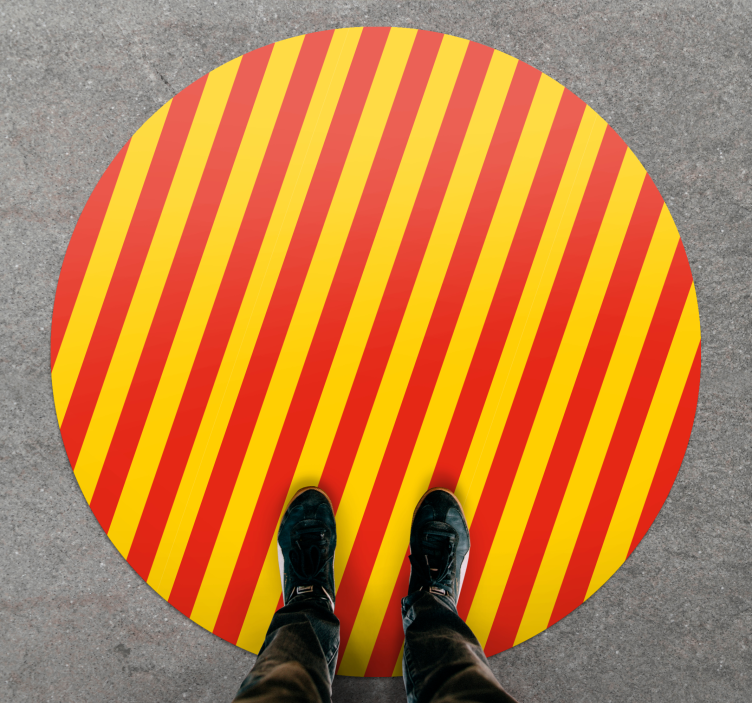 Transform your living space with the captivating striped vinyl rug in vibrant striped display. Its eye-catching design features bold, vertical stripes in a stunning combination of red and yellow that will instantly brighten up any room. This striking piece not only adds a splash of color but also creates a lively atmosphere that invites creativity and joy!