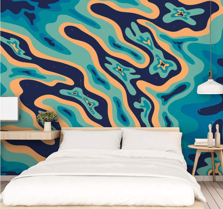 This design features a beautiful abstract blue islands photomural pattern that is sure to catch your eye. With different colors and shapes, you can enjoy the look of this mural every time you enter the room.