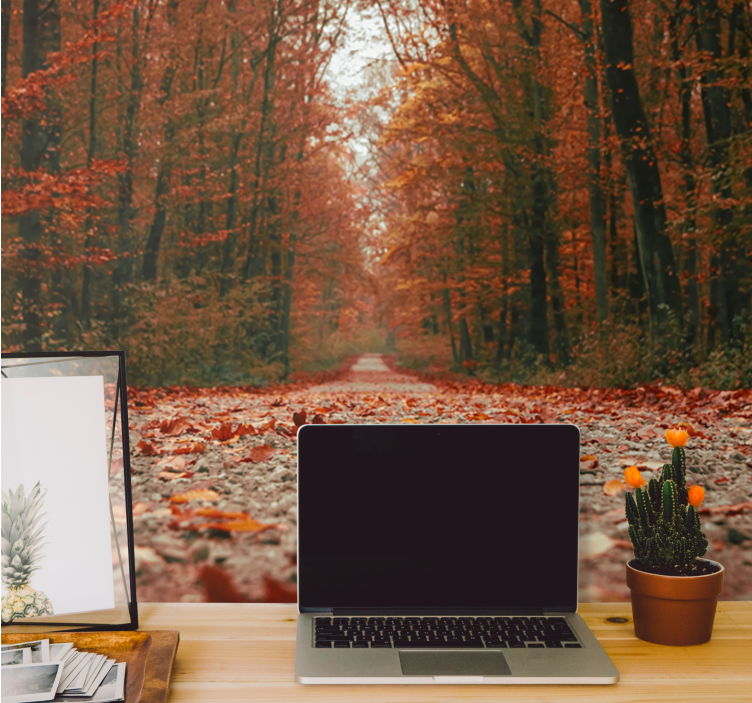 Transform your space with the stunning Forest wall mural autumn pathway trail. This exquisite design captures the essence of a tranquil autumn forest, featuring a picturesque road winding through a vibrant landscape. The rich hues of fall create a warm ambiance, inviting nature into your home. With depth and detail, this mural showcases a serene pathway surrounded by cascading leaves, embodying the beauty of the autumn season.