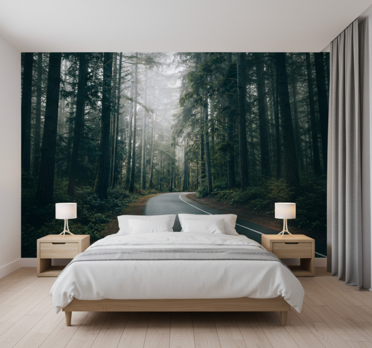 The Forest wall mural foggy pine road forest wall mural is not just a visual delight but an invitation to experience the calming effects of nature right in your home. Imagine waking up each day surrounded by the serene beauty of a foggy pine road, allowing your mind to escape to a tranquil forest. This mural serves as a perfect backdrop for relaxation and inspiration, making it an ideal choice for living rooms, bedrooms, or creative spaces. Let your walls tell a story of peace and beauty!