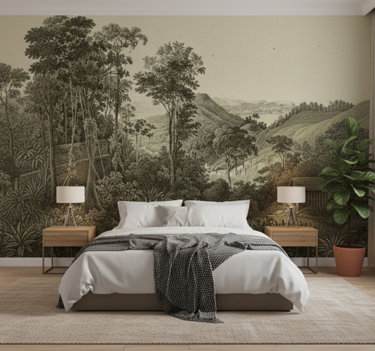 Forest wall mural hilly forest print