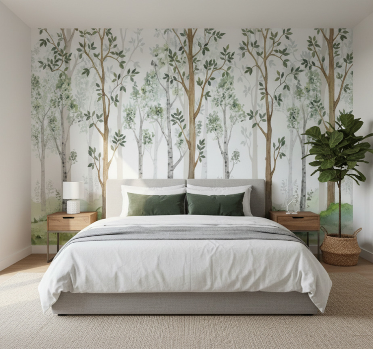 Forest wall mural minimalist botanical design