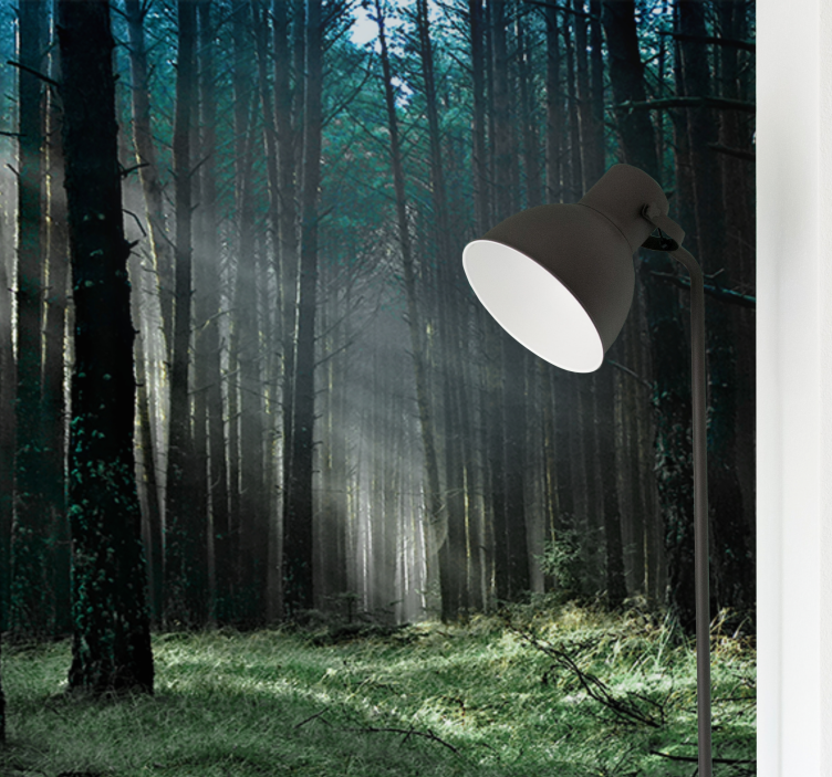 Transform your space with the enchanting Forest wall mural radiant forest pathway, where vibrant trees stretch towards the sky, and sunlight filters through the leaves in a breathtaking sunburst effect. This stunning piece of photography captures the beauty of nature, bringing a serene forest atmosphere right into your home!