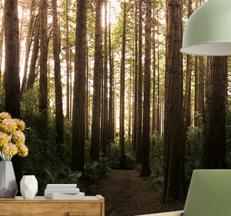 Transform your space with our stunning Wall mural nature tall forest trees. This captivating design features a lush rainforest with towering trunks and vibrant greenery that creates an inviting pathway through nature. It's not just a wall decoration; it's a breathtaking experience that brings the tranquility of a forest into your home.