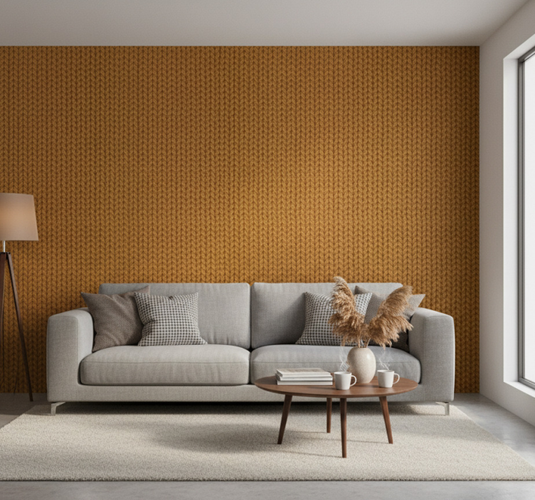 Reference: P12534Transform your living space with our stunning Living area wallpaper knitted fabric design. This unique design features a captivating knitted fabric pattern that adds warmth and texture, creating an inviting atmosphere. With its sophisticated matt colours, this wallpaper is perfect for enhancing any living area. The non-woven material ensures durability and ease of application, making it a fantastic choice for your home decor!